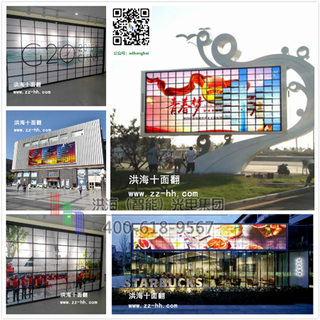 機械翻頁十面翻告別了傳統(tǒng)的機械傳動,取而代之是數(shù)控智能控制系統(tǒng)的應(yīng)用,化腐朽為神奇,以其波瀾壯闊的新奇和動感效果橫空出世,在視覺疲勞中給人以清新、懷舊但又與眾不同的視覺感受。好的元素用于建筑、裝飾、場館、舞臺和戶外廣告,讓建筑動起來,就會賦予靈魂和創(chuàng)意,帶來更多價值。 創(chuàng)意無止境,廣告無邊界,洪海光電集團帶您進入時尚廣告前沿,來吧朋友們,與洪海共舞,打造您的財富空間!!!