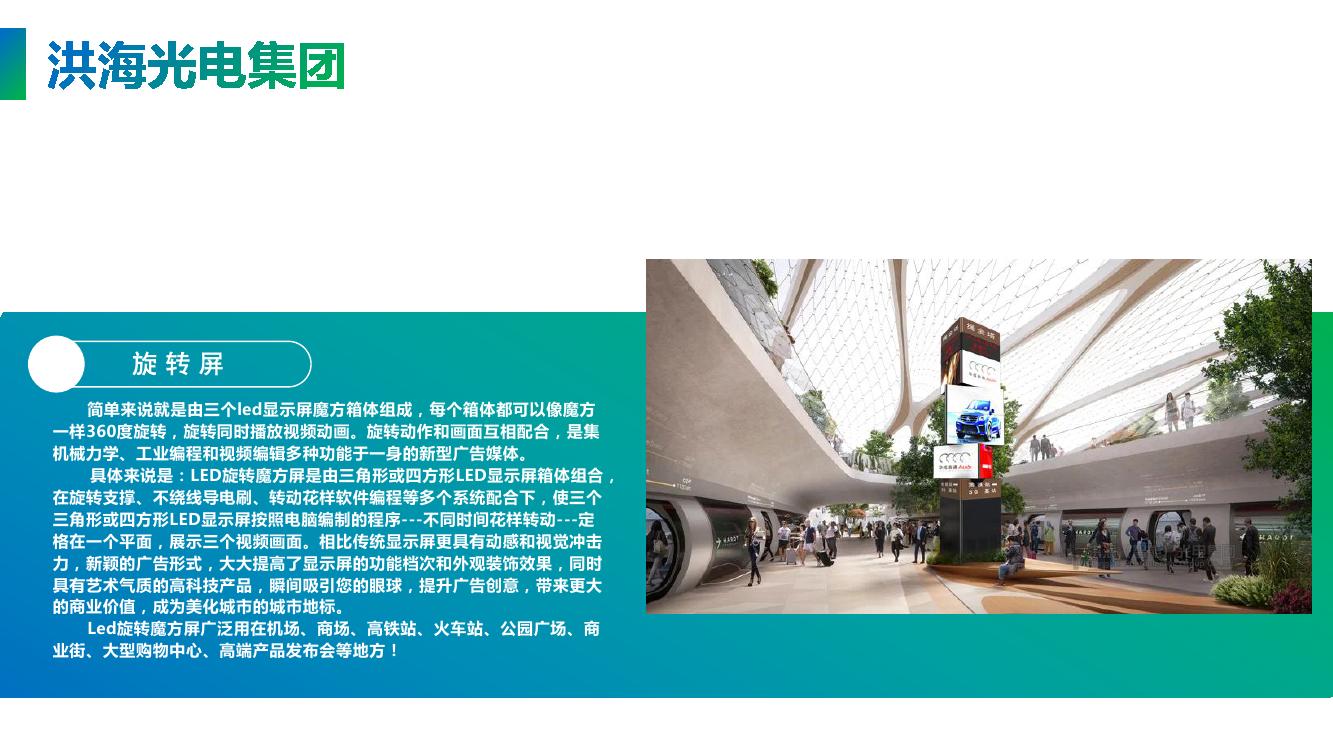 Led旋轉(zhuǎn)魔方屏廣泛用在機(jī)場(chǎng)、商場(chǎng)、高鐵站、火車站、公園廣場(chǎng)、商業(yè)街、大型購物中心、高端產(chǎn)品發(fā)布會(huì)等地方!