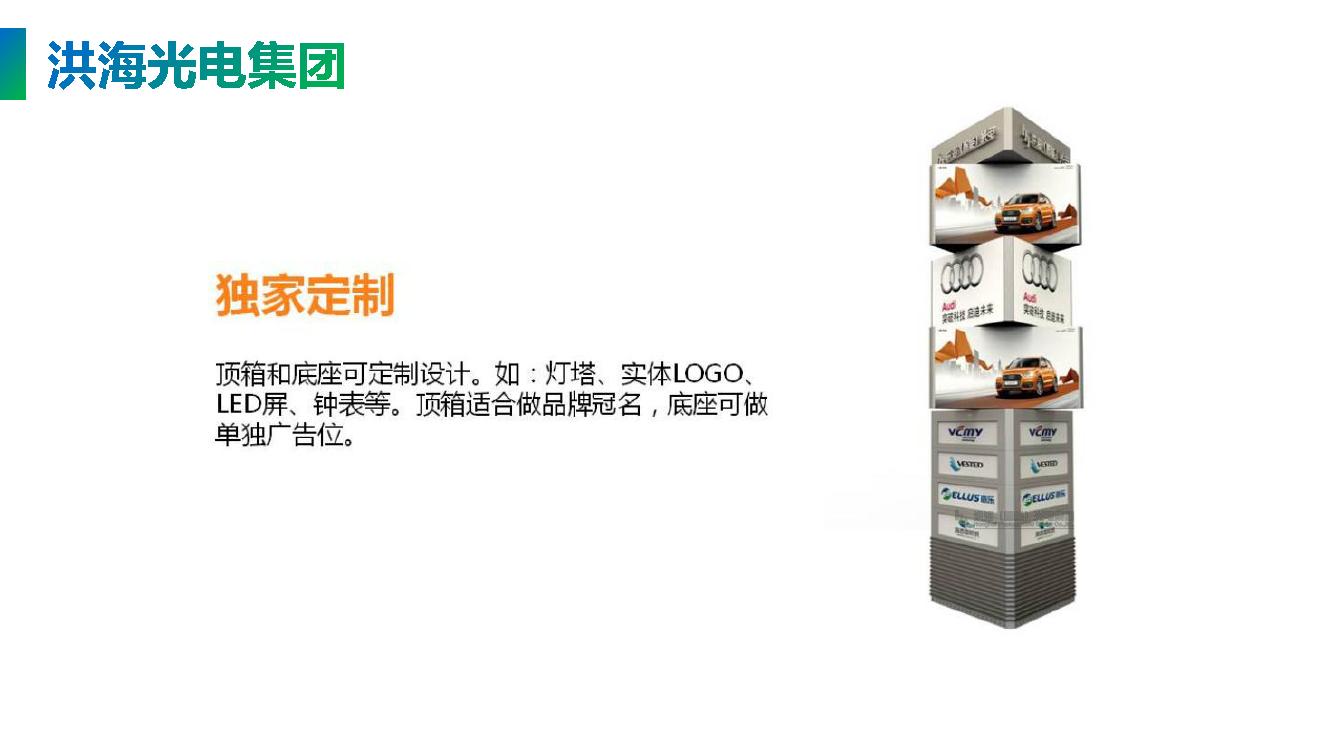 具體來說是:LED旋轉(zhuǎn)魔方屏是由三角形或四方形LED顯示屏箱體組合,在旋轉(zhuǎn)支撐、不繞線導(dǎo)電刷、轉(zhuǎn)動(dòng)花樣軟件編程等多個(gè)系統(tǒng)配合下,使三個(gè)三角形或四方形LED顯示屏按照電腦編制的程序---不同時(shí)間花樣轉(zhuǎn)動(dòng)---定格在一個(gè)平面,展示三個(gè)視頻畫面。相比傳統(tǒng)顯示屏更具有動(dòng)感和視覺沖擊力,新穎的廣告形式,大大提高了顯示屏的功能檔次和外觀裝飾效果,同時(shí)具有藝術(shù)氣質(zhì)的高科技產(chǎn)品,瞬間吸引您的眼球,提升廣告創(chuàng)意,帶來更大的商業(yè)價(jià)值,成為美化城市的城市地標(biāo)。